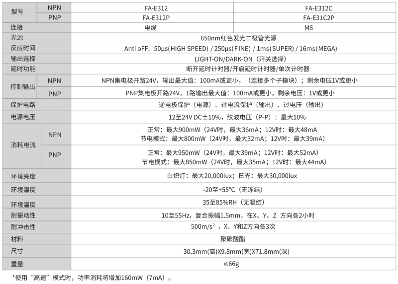 智能型数字光纤传感器型号:FA-E312,FA-E312P,FA-E312C,FA-E31C2P。